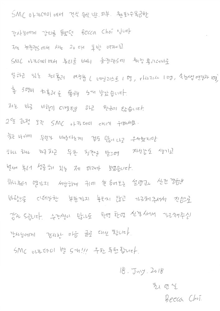 | 뉴질랜드에서 실무과정만을 위해 SMC아카데미로 오신 Beeca Choi님! | |