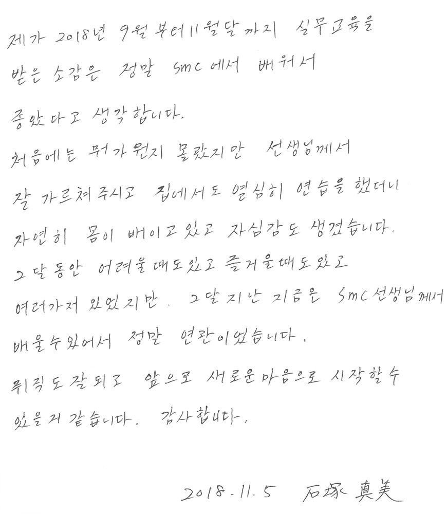 SMC에서 배워서 좋았다고 생각합니다.