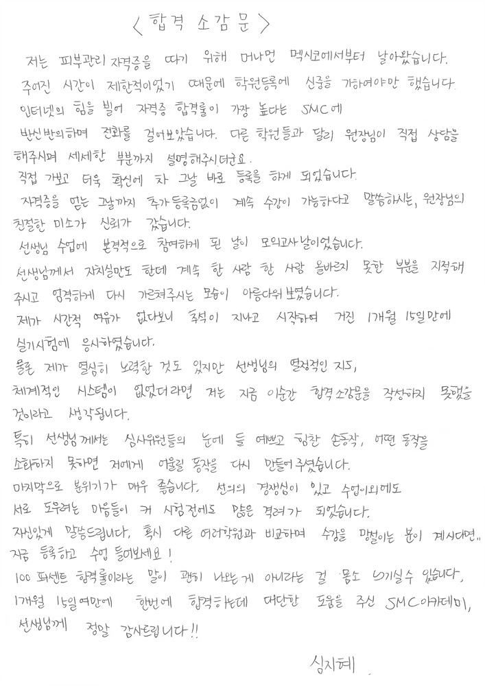 | 피부관리 자격증을 따기위해 멕시코에서오신 심지혜님! | |