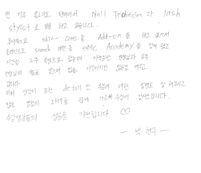 미국 콜로라도 덴버에서 피부실무를 배우러 오신 박현주님!