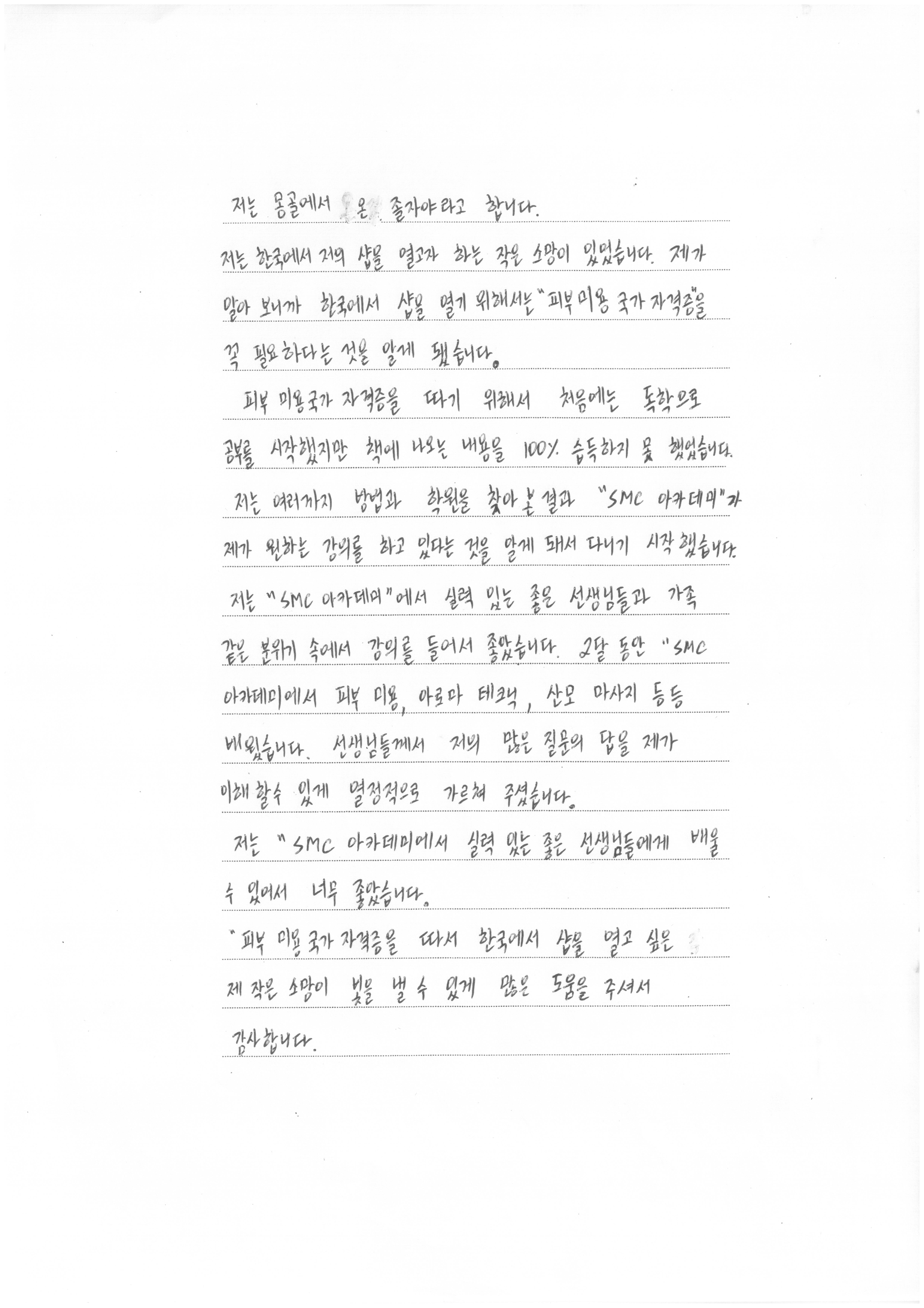 실력있는 강사님의 열정적인 수업으로 샵오픈의 꿈, 몽골에서 오신 졸자야님!