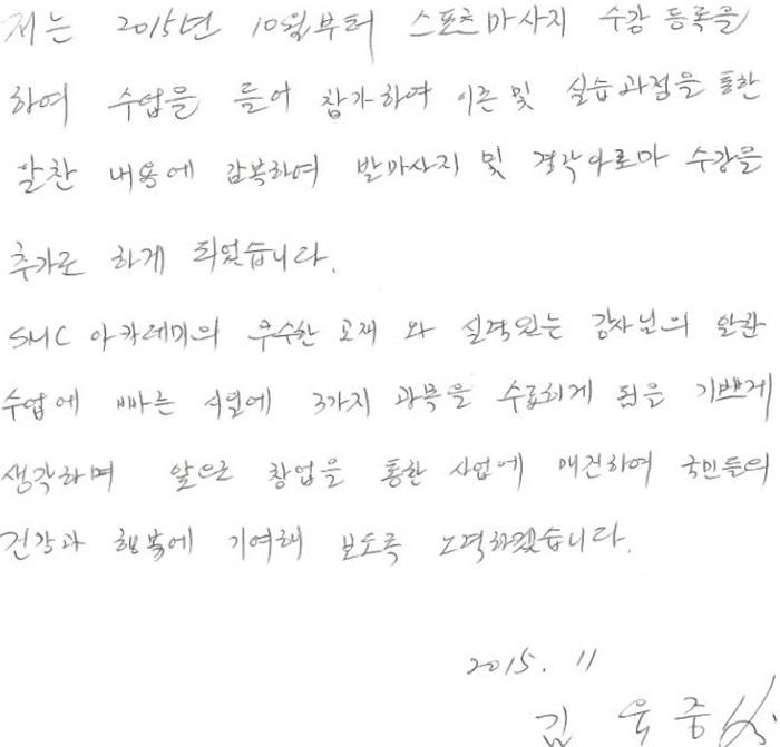 사업 창업을 하기 위해 서울SMC아카데미에서 교육 받으신 김욱중님