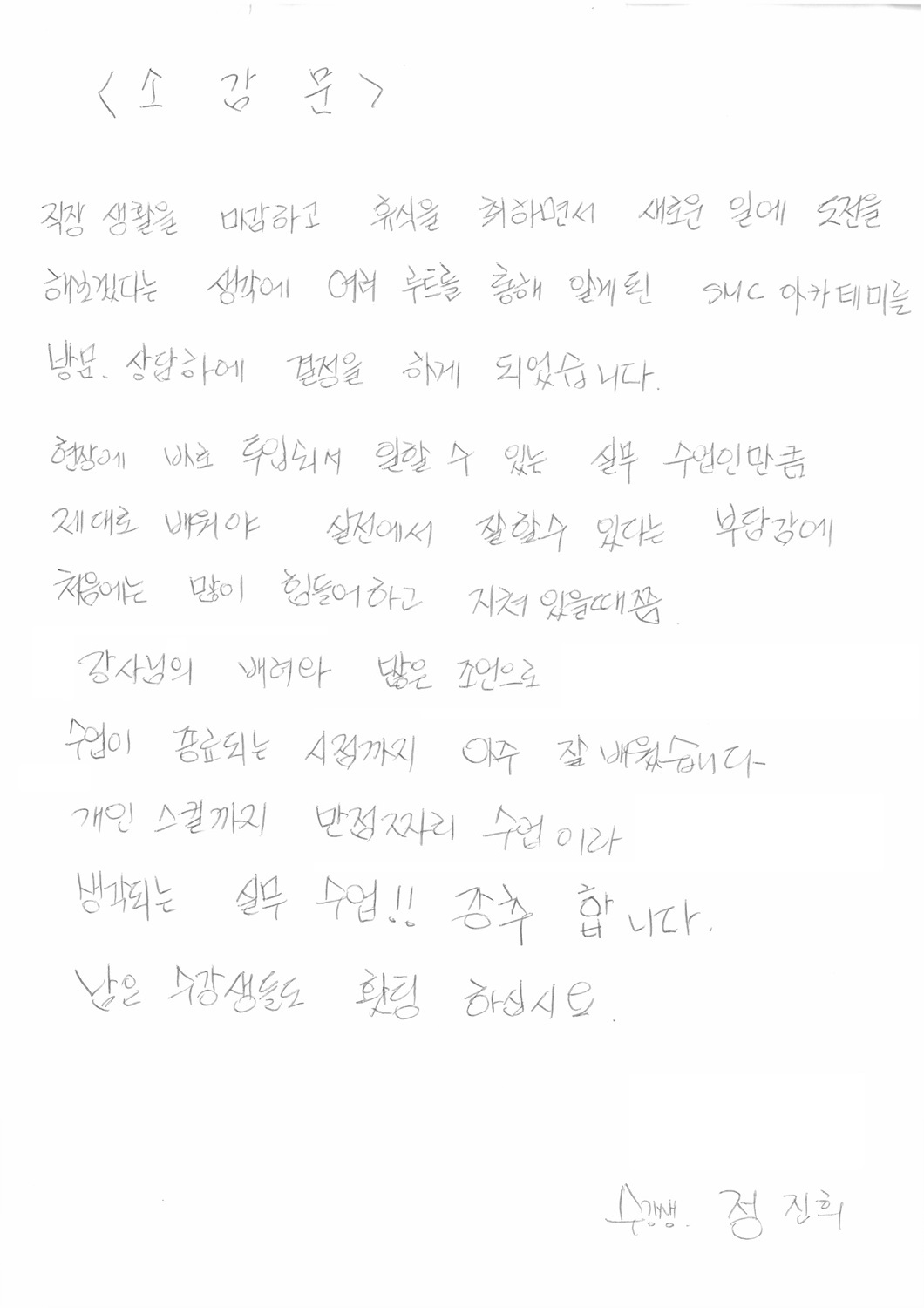 강사님의 배려와 조언을 통한 만점짜리 수업, 강추!! - 정진희님!