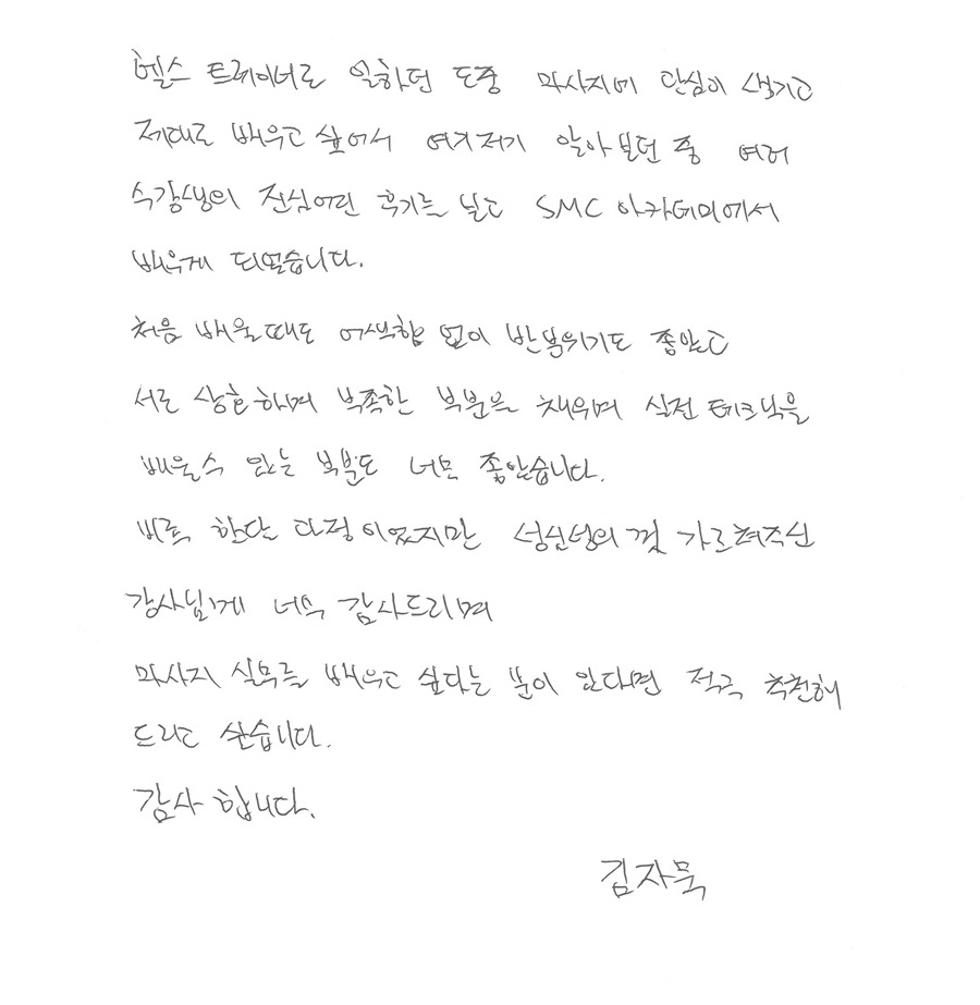 수강생의 진심어린 후기를 보고 SMC아카데미에서 배우게 되었습니다.