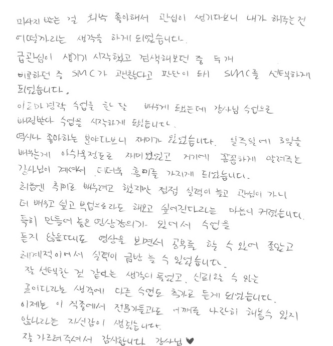 체계적인 수업에 실력이 금방늘고, 자신감이 늘게되어 - 오성민님! 피부관리사 수강후기자필