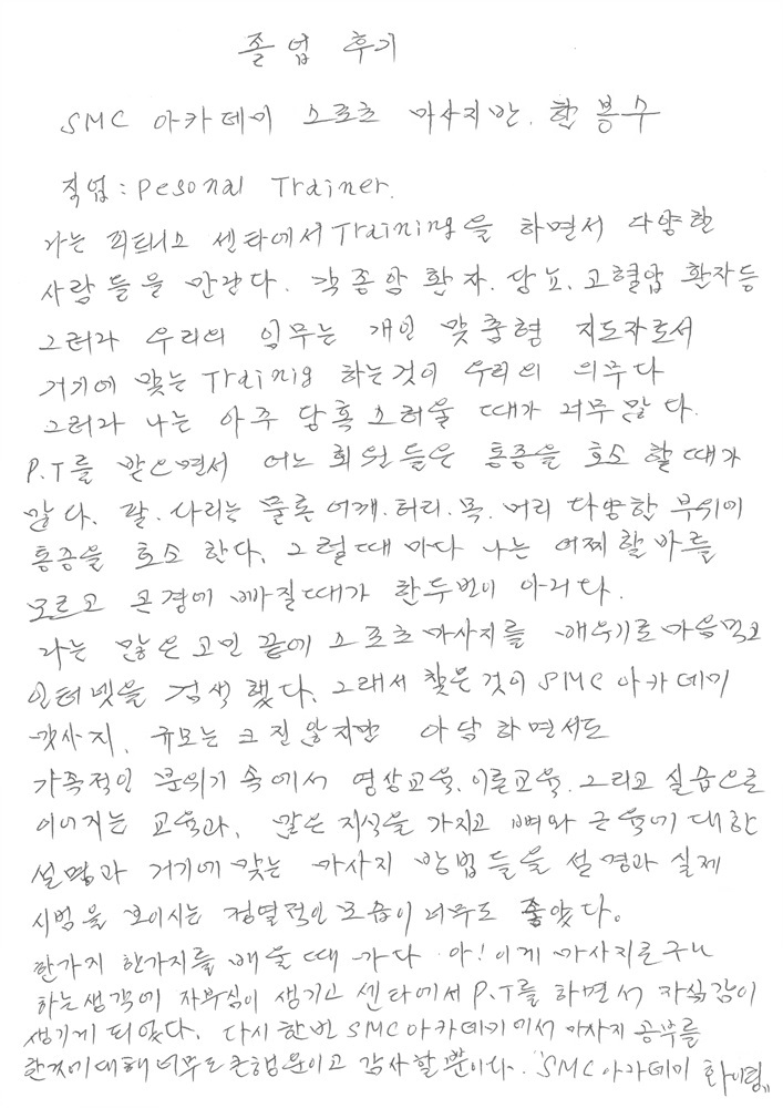 피트니스 트레이너하며 아픈분께 스포츠마사지를.- 한봉수님