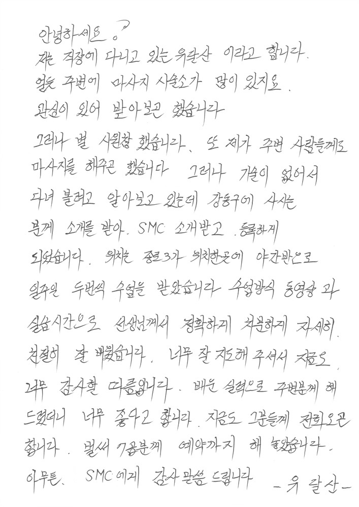 직장을 다니며 야간반수업으로 지인들께 마사지를- 유달산님!