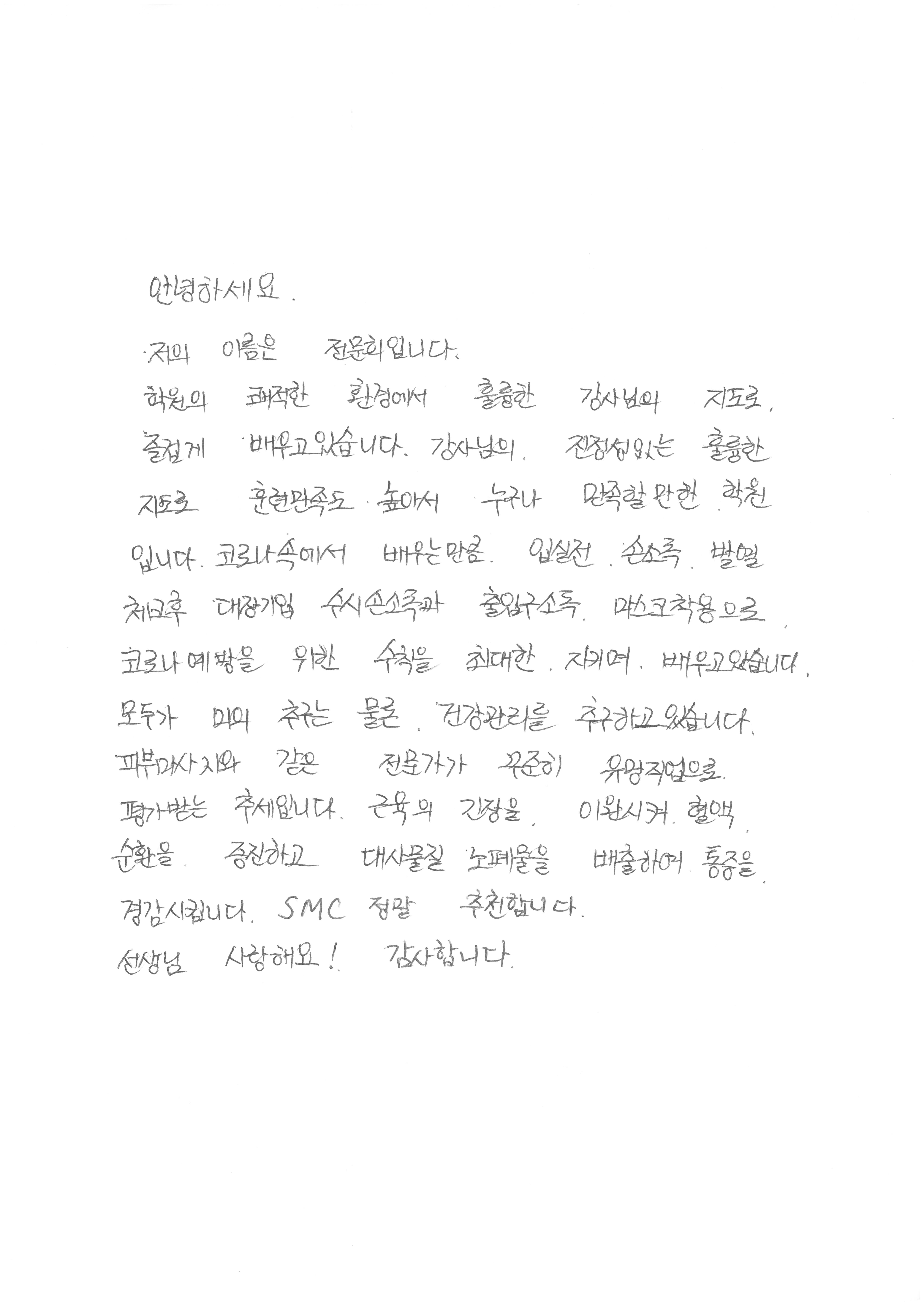 코로나예방수칙을 철저히 지키며, 만족도 높은 교육- 전문희님!