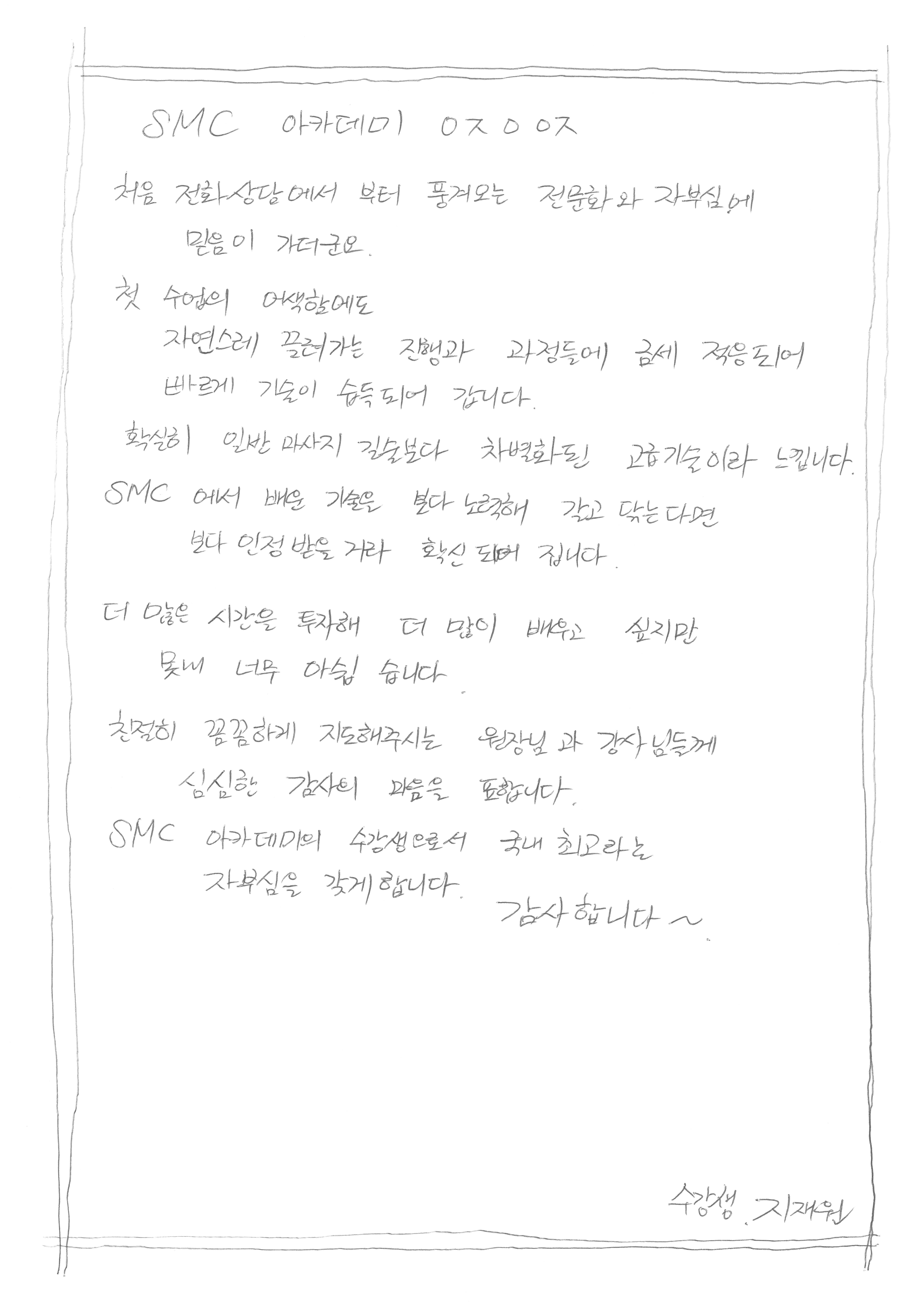 차별화된 고급기술이 국내최고인 SMC아카데미- 지재원님!