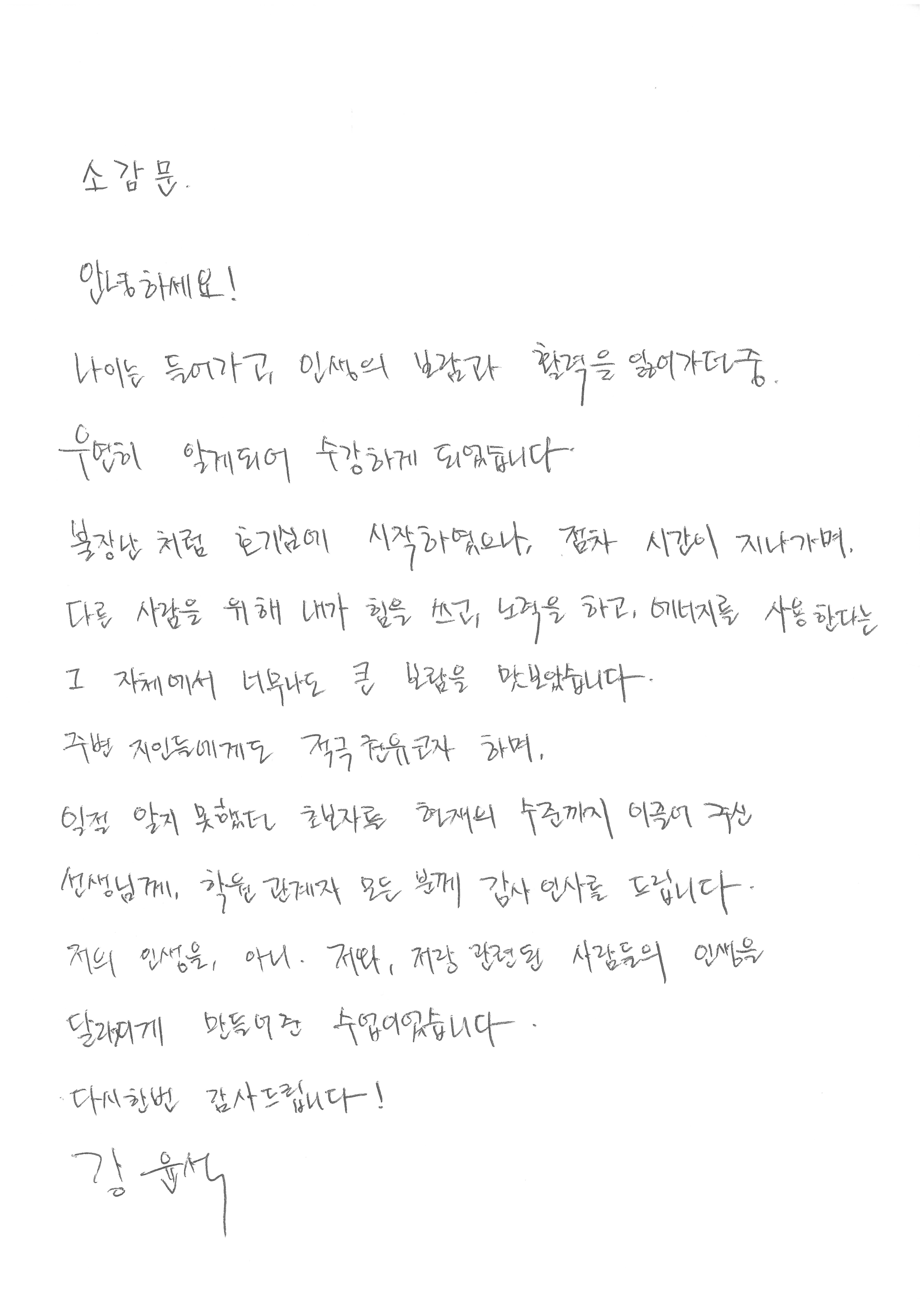 인생의 활력을 잃어가던중 배움에서 큰보람을 - 강윤석님!