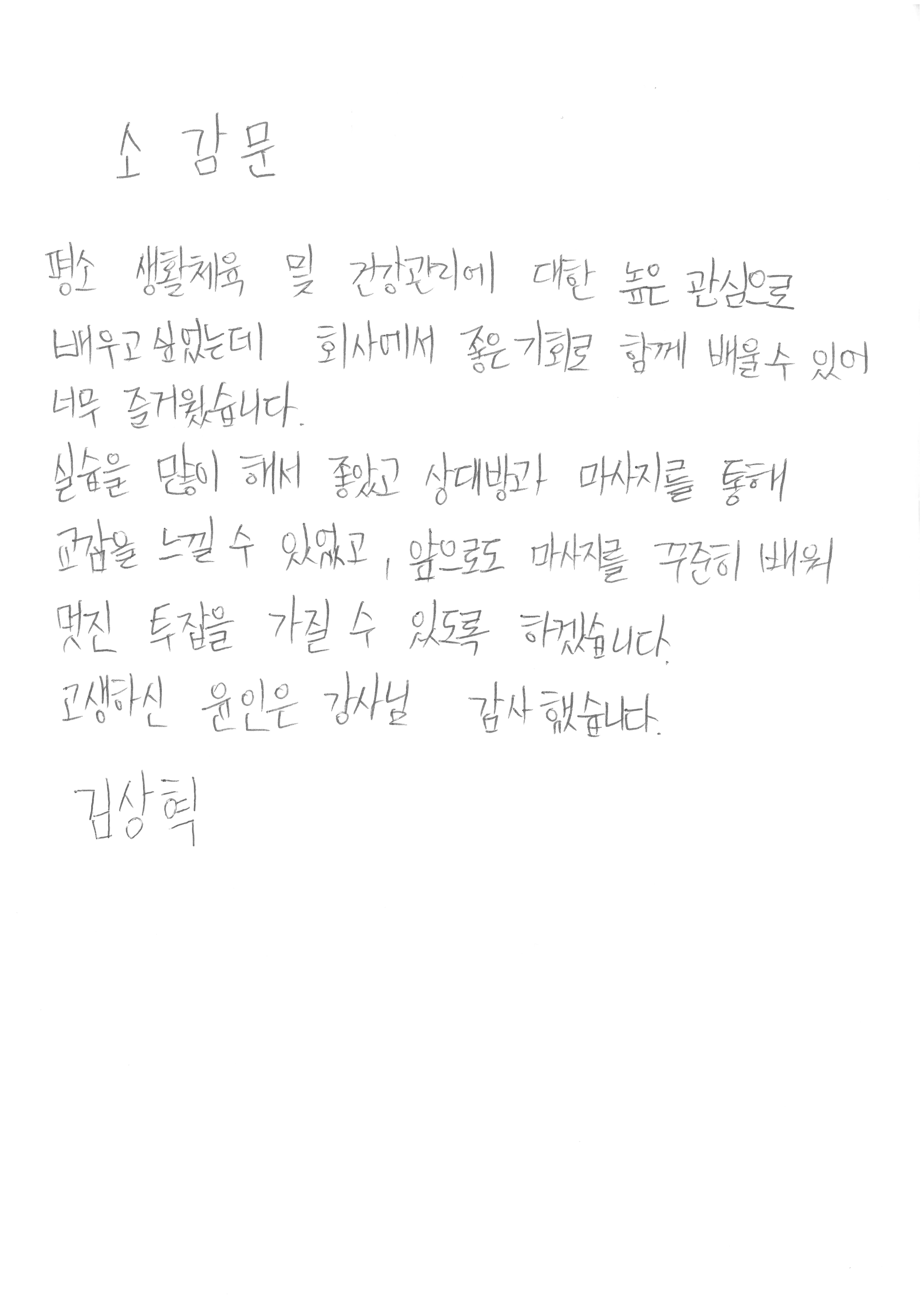 건강관리에대한 높은 관심으로 시작된 수업- 김상혁님!