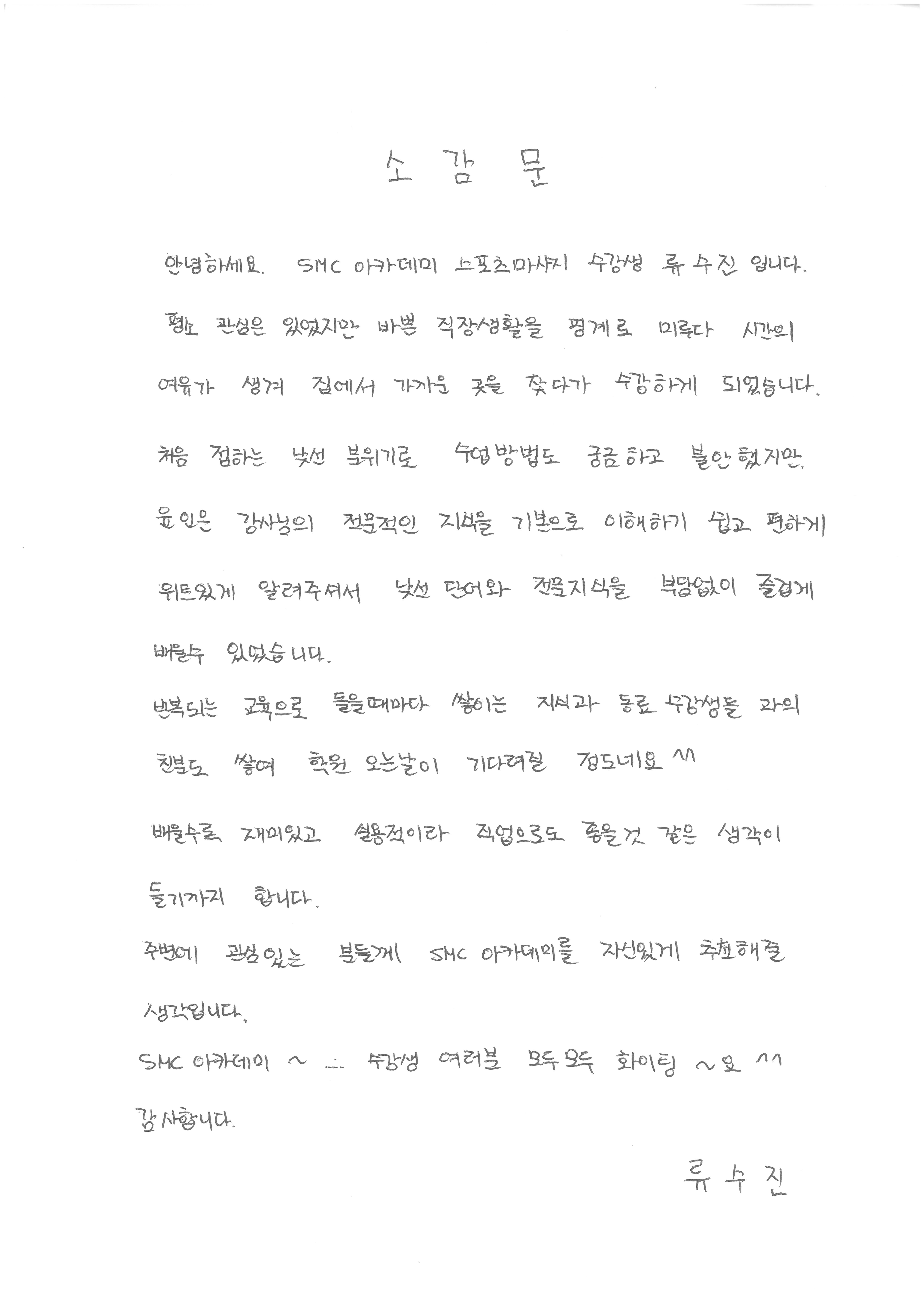 스포츠마사지에 관심있는분들께 적극추천하고픈 SMC아카데미- 류수진님!