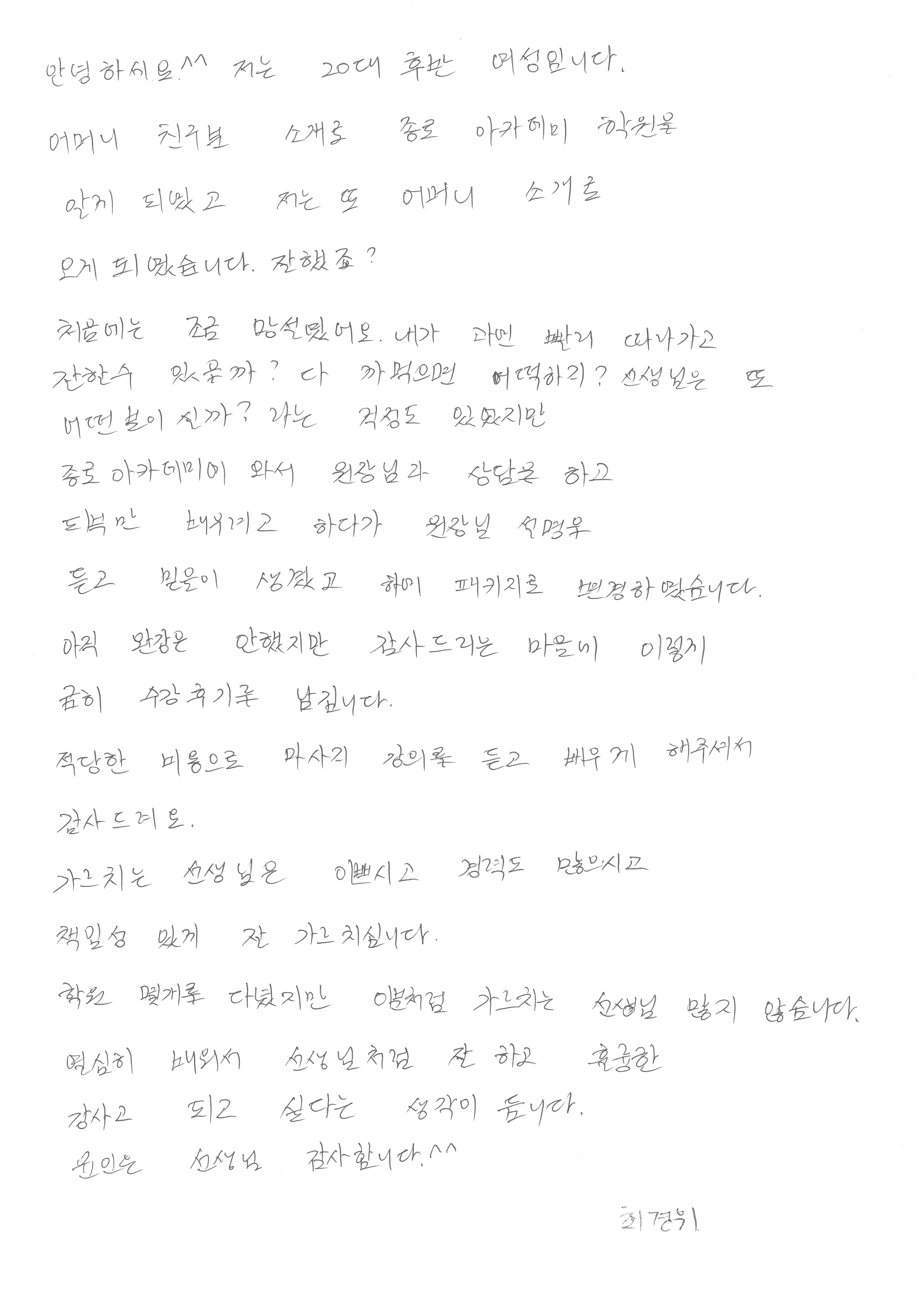 고민하며 망설였지만 수업 후, 믿음이 생겨- 최경위님!