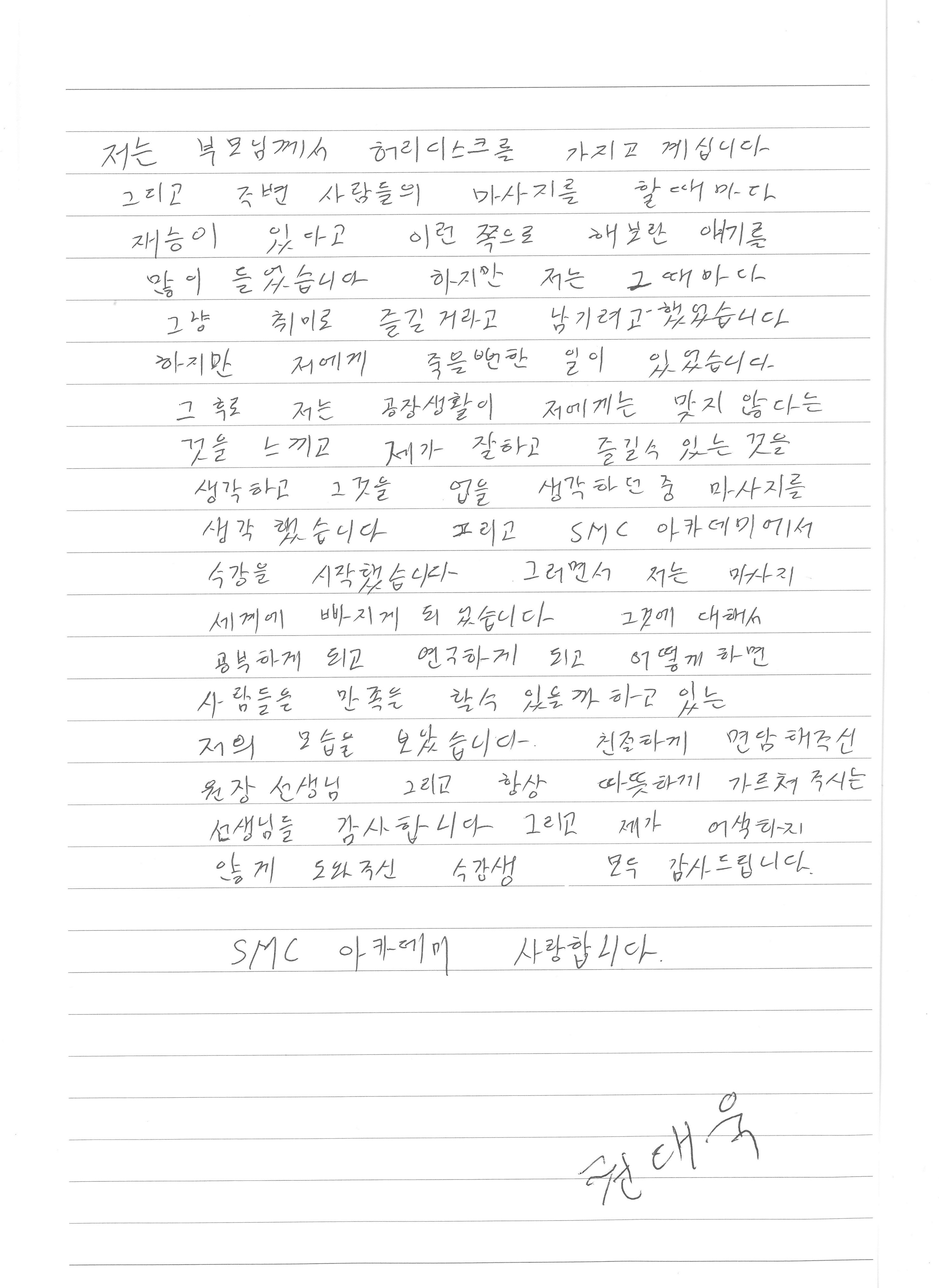 취미로만 남기려고했던 재능을 SMC를 통해, 마사지의길로- 권대욱님!