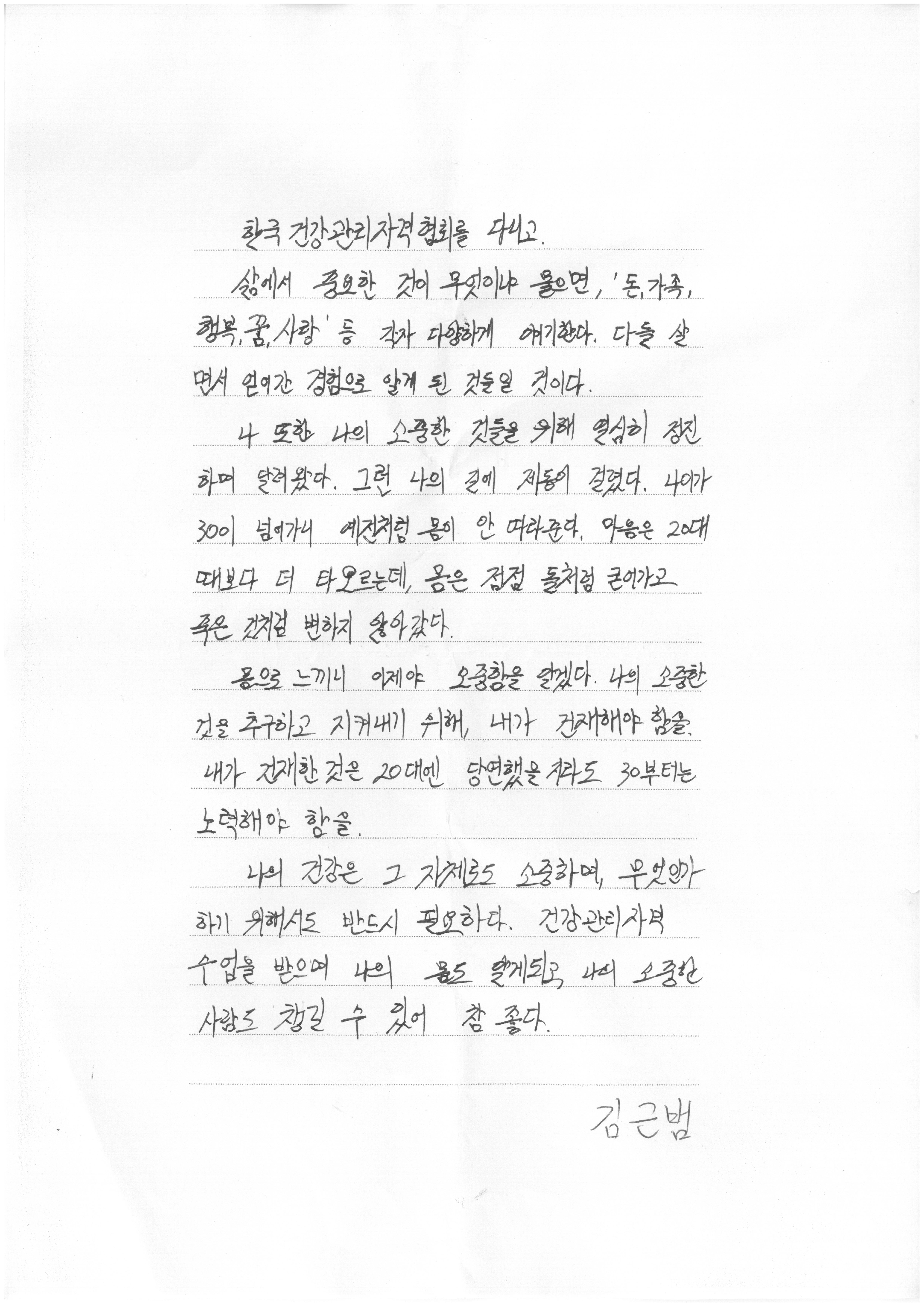 스포츠마사지 교육후기 건강의 소중함을 느껴 시작하게된 수업