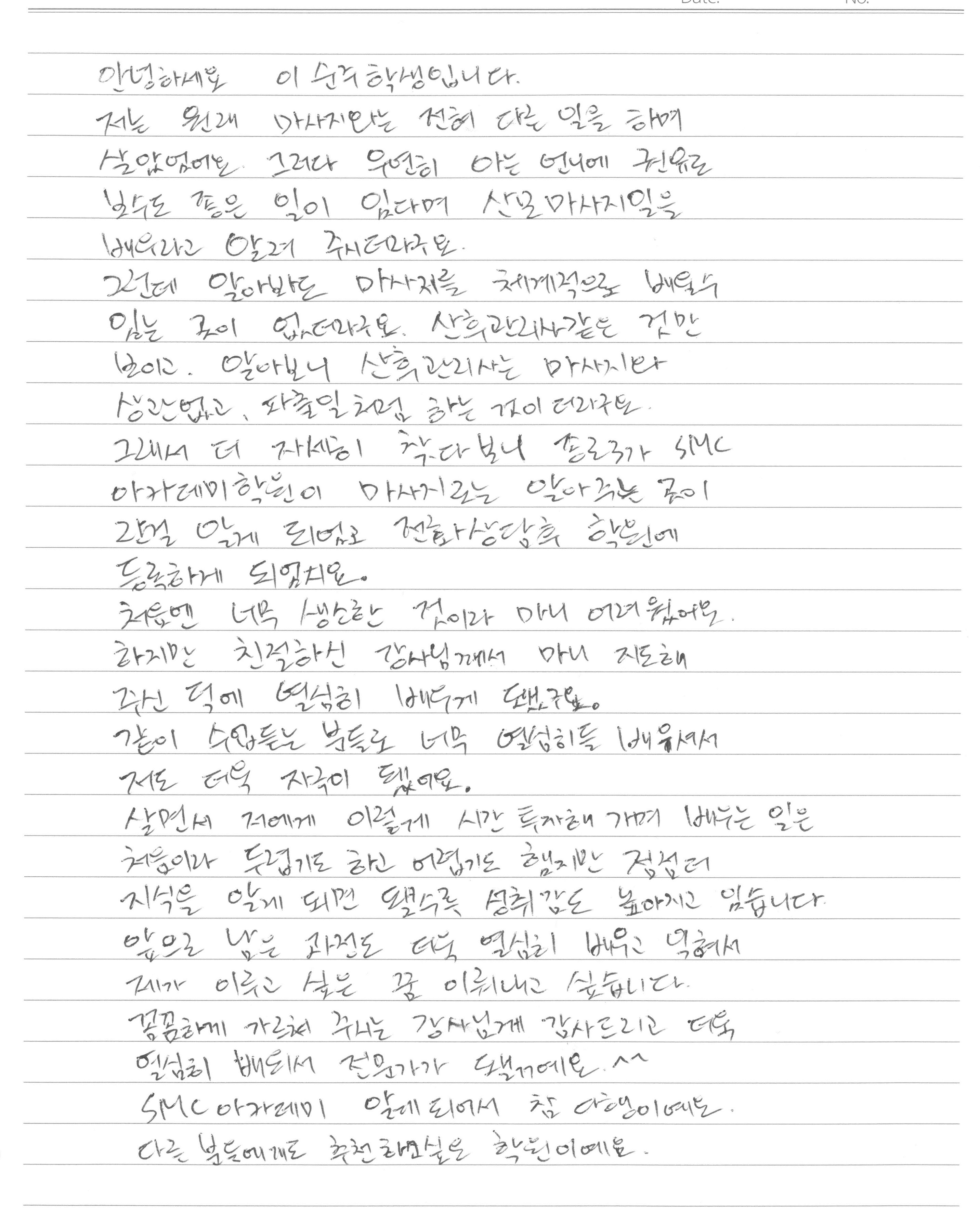 종합반 마사지교육 후기 생소한부분도 친절하게 지도