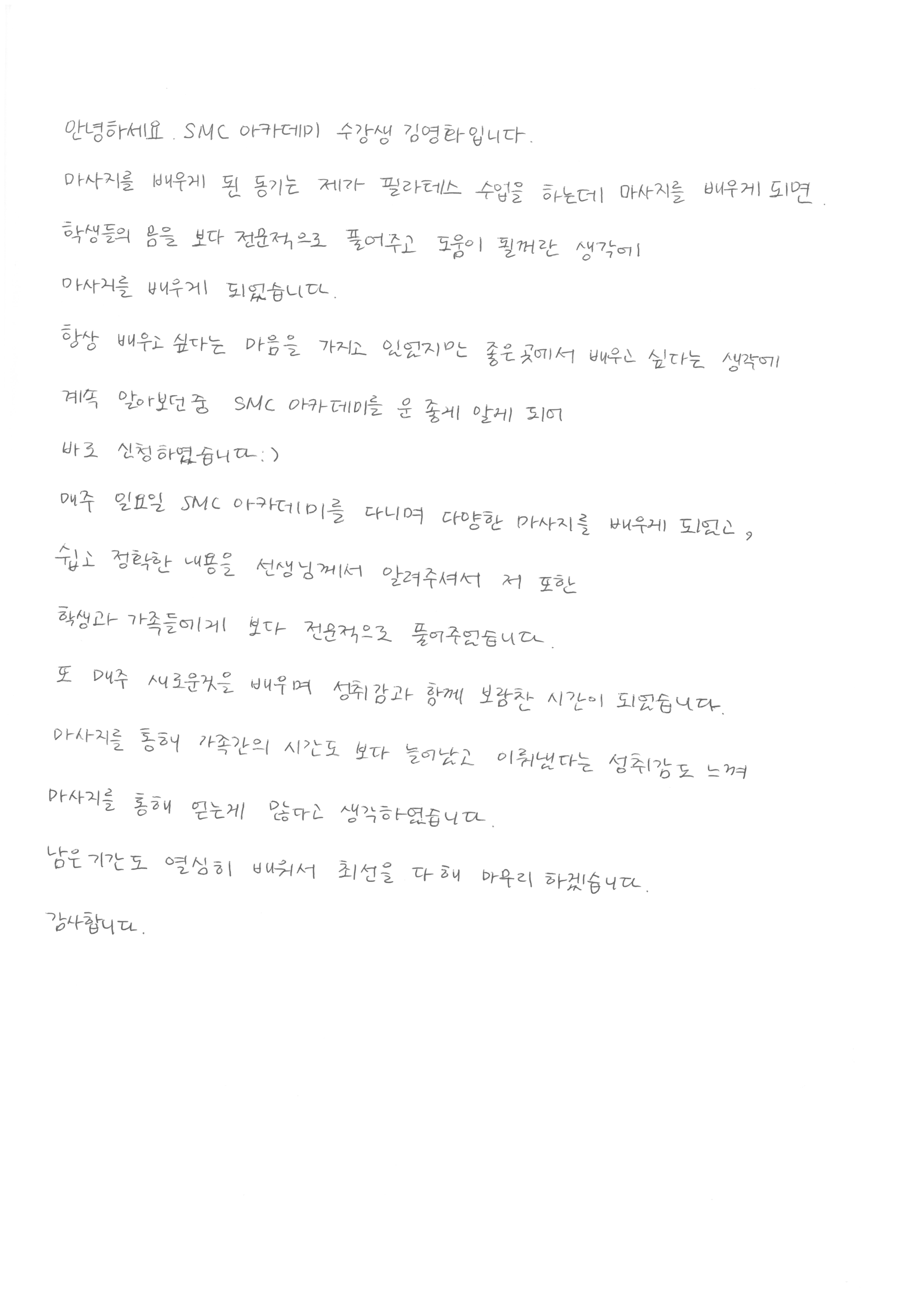 스포츠마사지,아로마경락교육 후기 쉽고 정확하고 전문적인 수업에 보람