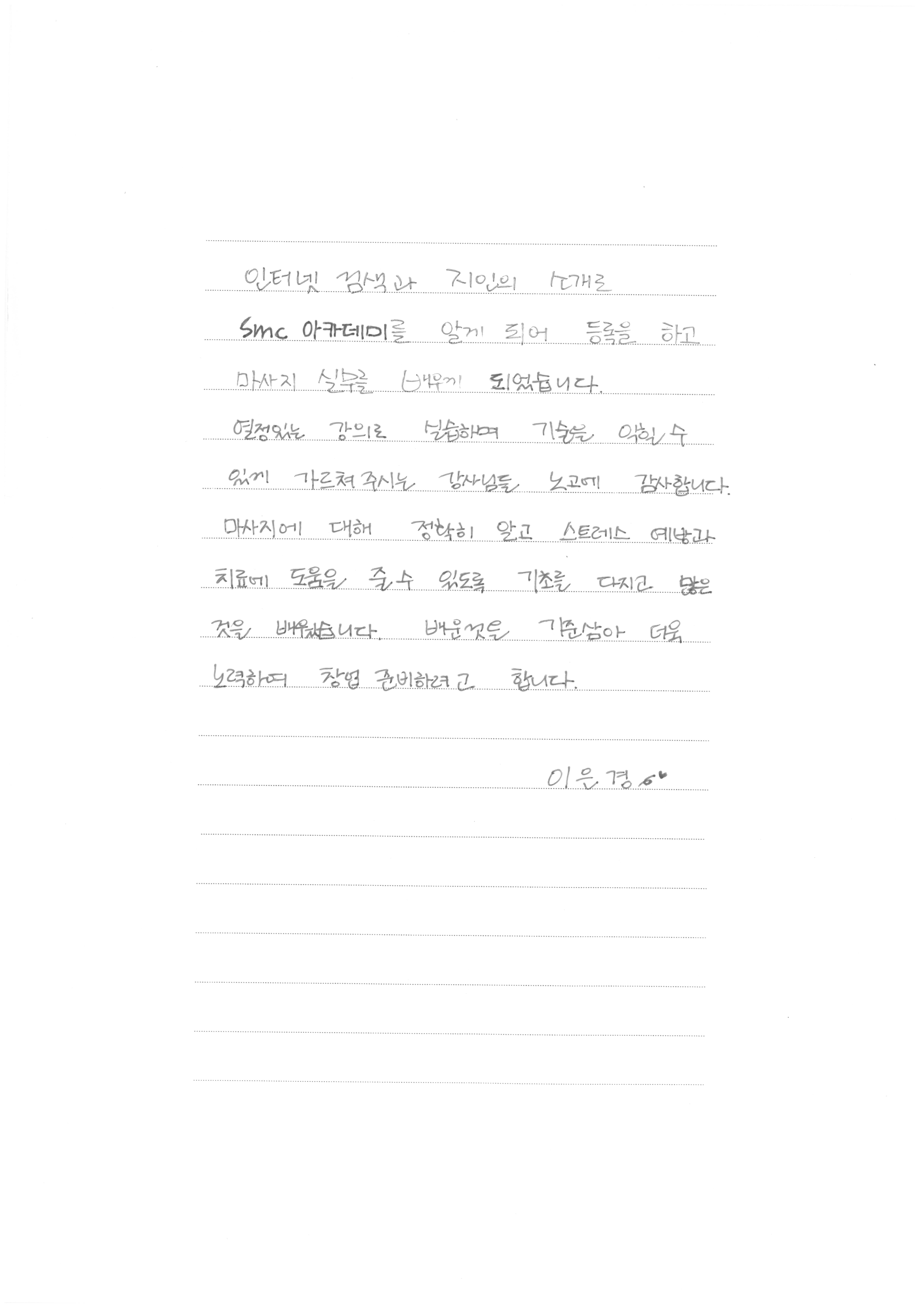 종합반 마사지교육 후기, 열정있는강의로 기술을 익혀 창업준비