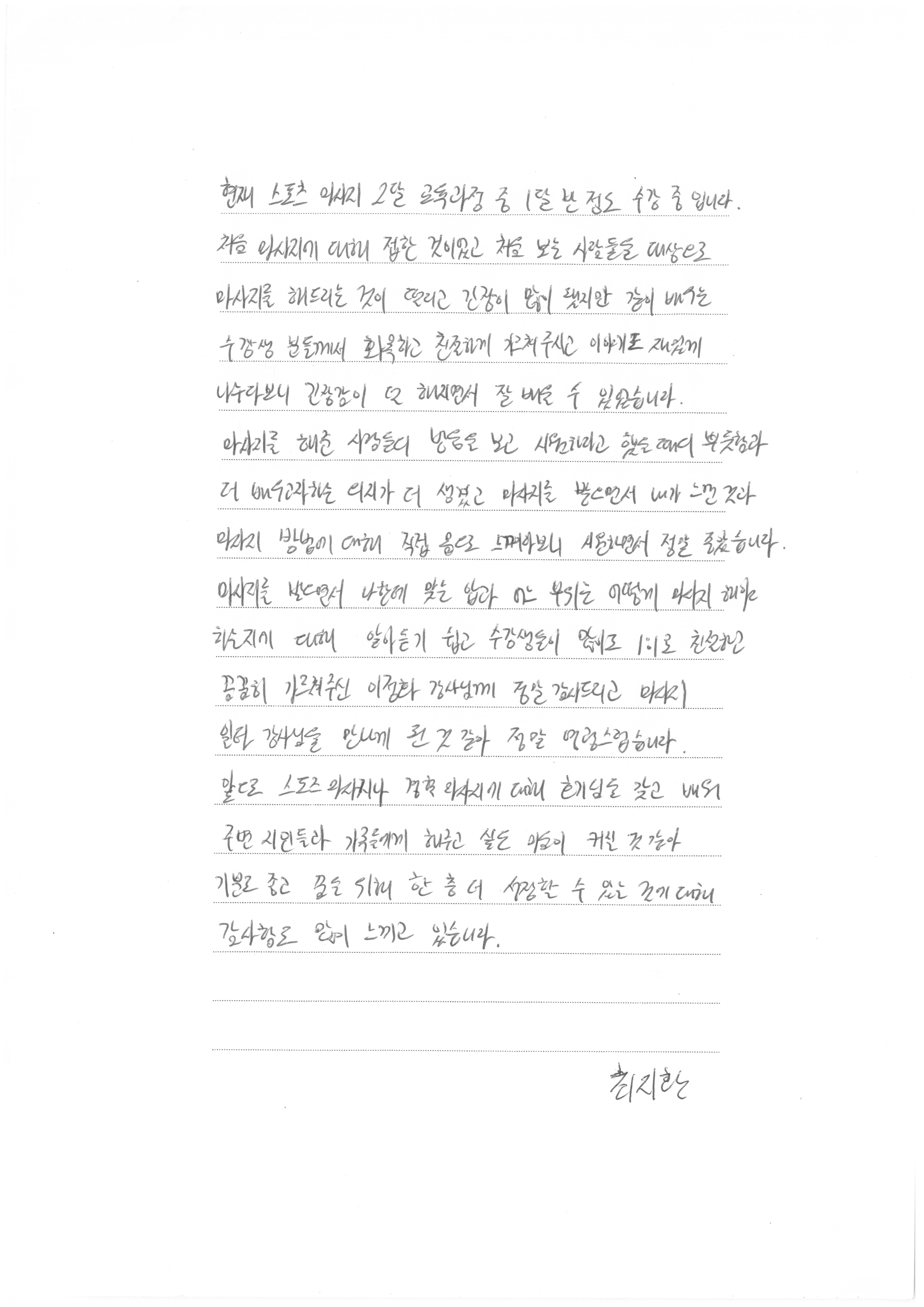 스포츠마사지 후기 화목한 교실분위기에 긴장감도 풀리고
