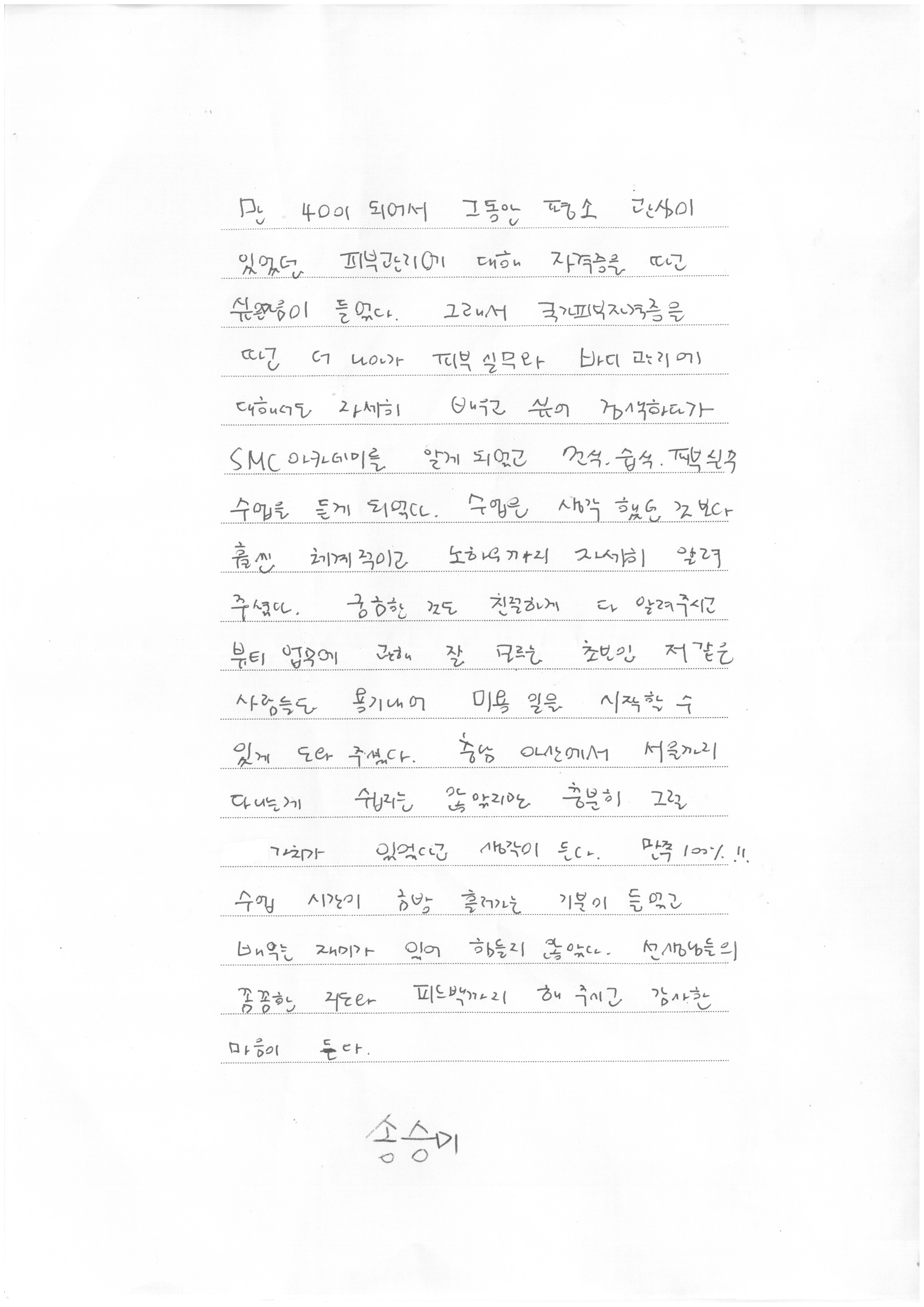 스포츠마사지,아로마경락, 피부실무 교육 후기 체계적수업으로 충남에서 온