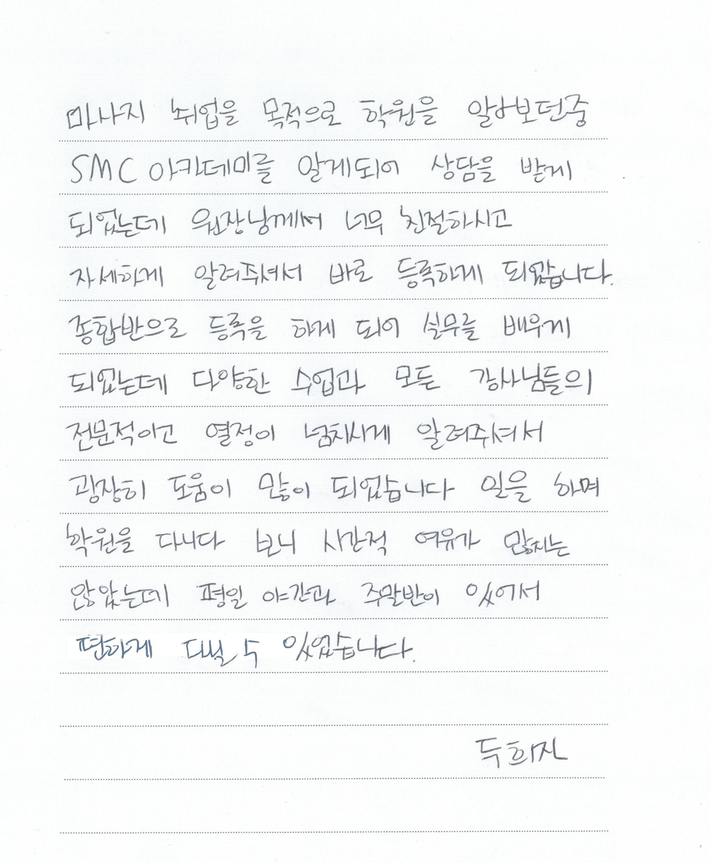 종합반 교육후기, 다양한 수업과 전문적이고 열정적인 가르침