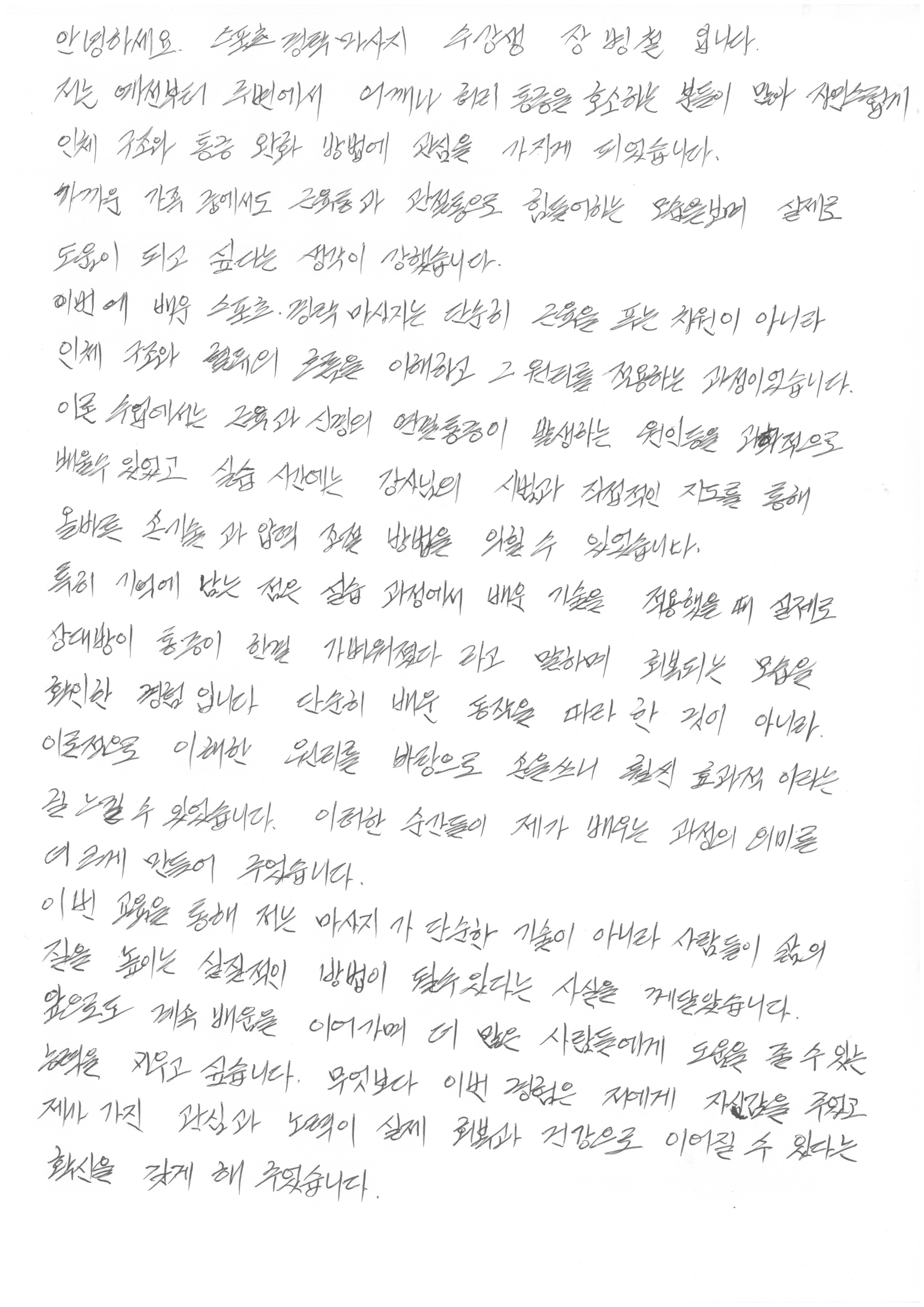 스포츠마사지, 경혈지압 교육후기(주말반)배운기술을 적용했을때 회복되는 모습