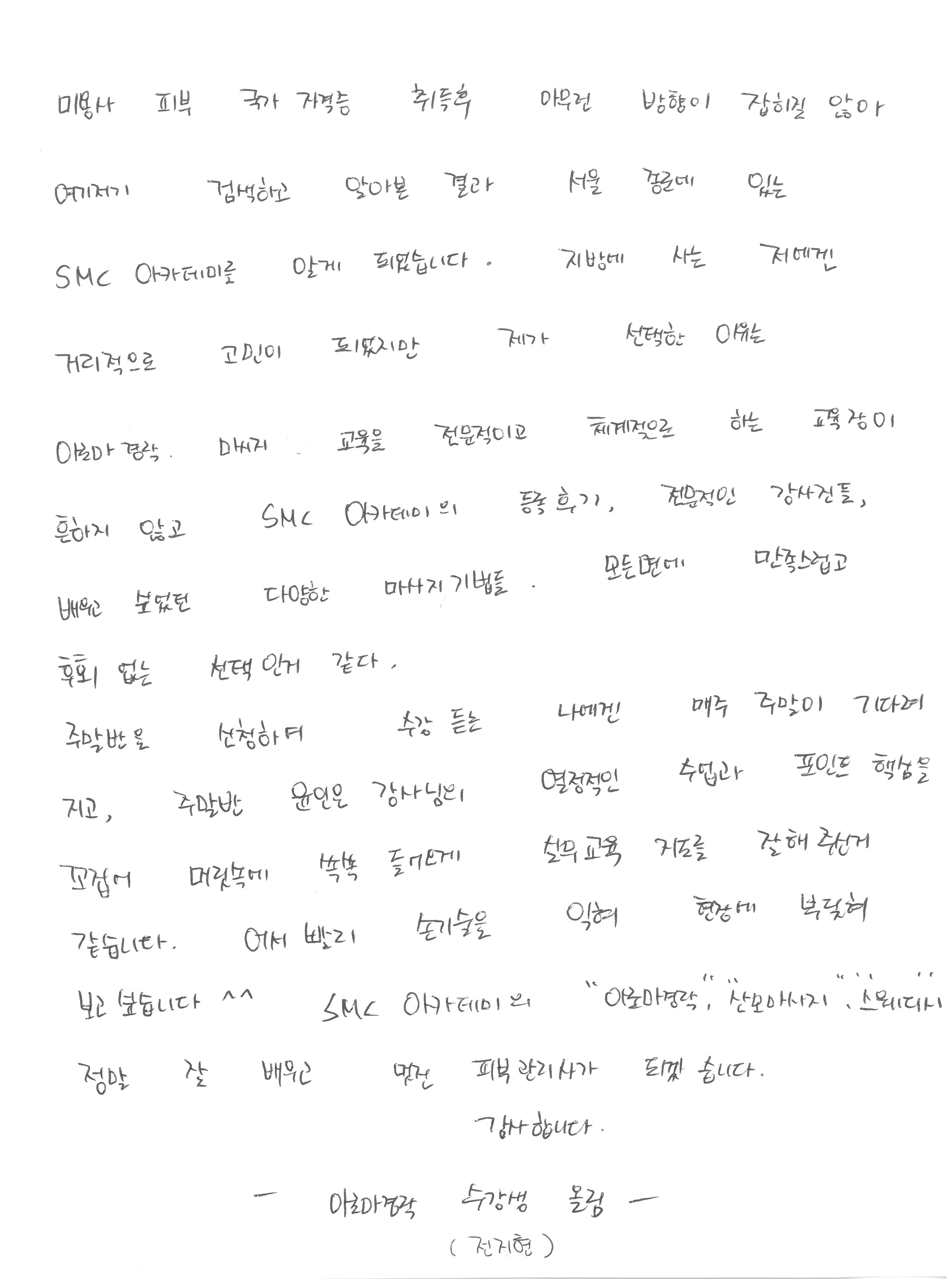 스포츠마사지 교육후기 모든면에 만족스럽고 후회없는 선택