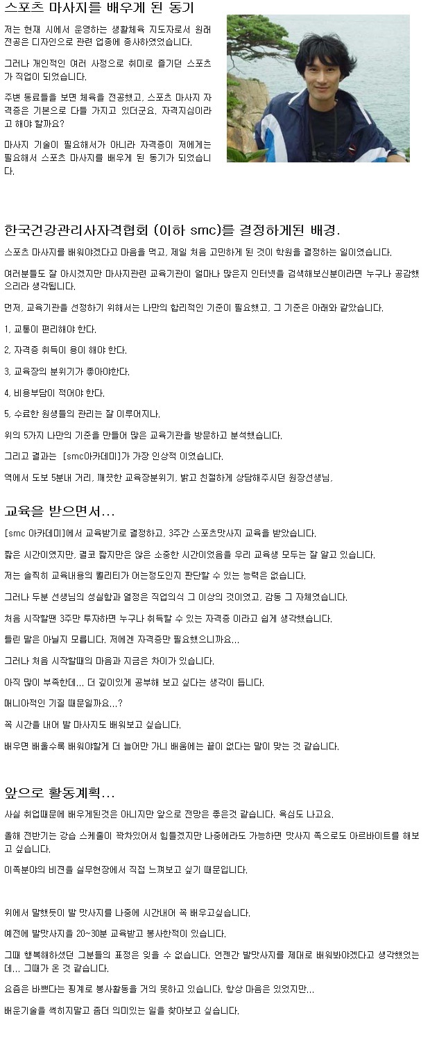 스포츠마사지 3주간의 교육을 마치며... - 김성주님