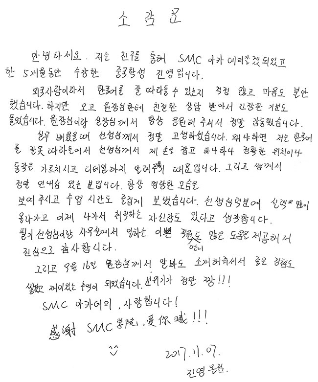 선생님 덕분에 실력이 많이 올라가 이제는 취직하는 자신감도 생겼습니다. -진영님